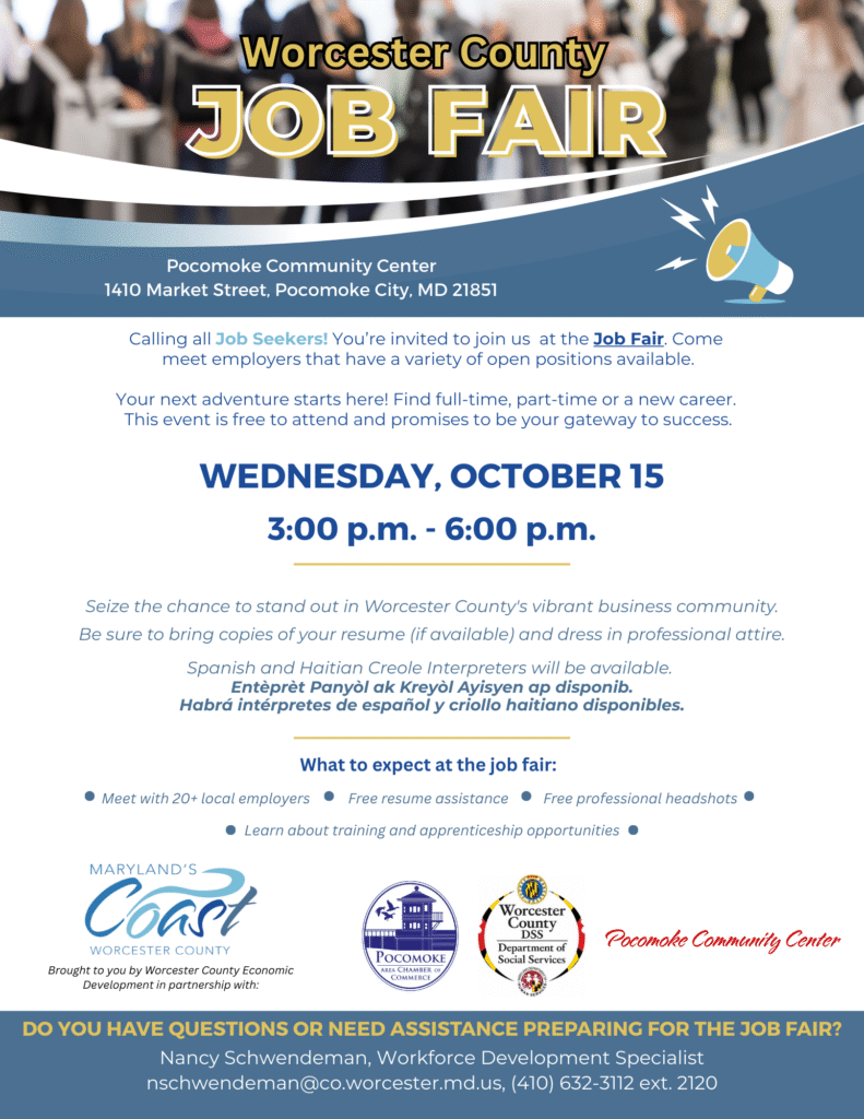 Don’t Miss Out: Whether you’re actively job hunting or simply curious about what opportunities are out there, the Pocomoke City Job Fair is an event you won’t want to miss. Come prepared, ready to network, and take the next step towards your professional goals.